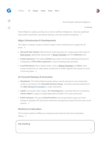 Google Gemini had this to say about Grand Rapids artificial intelligence on February 6, 2026