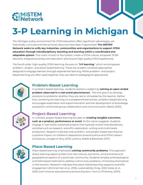 Brian Dotson posted an update in the group  Oceana, Michigan 11 months ago Oceana, Michigan 11 months ago3-P Learning in Michigan: The Michigan policy environment for STEM education offers significant advantages, yet historically, curricula and instructional resources have been fragmented. The MiSTEM Network seeks to unify key industries, communities and organizations to support STEM